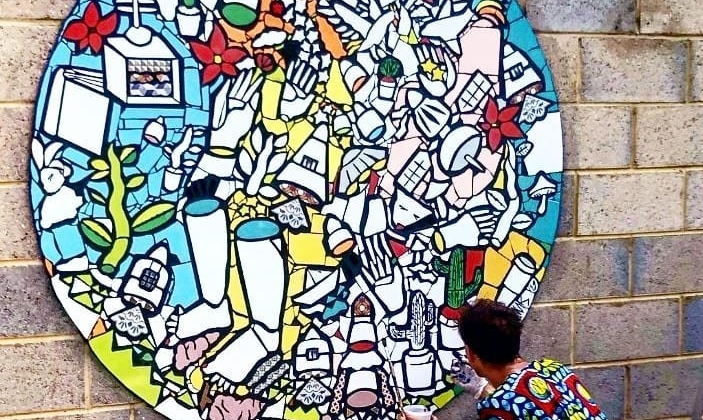 Five years after his first visit to Armenia, Riccardo Matlakas was back in Yerevan for “Drawing The Time”, a Street Art-Mural International Festival hosted by HayArt Cultural Center. For a month, he created anti-war murals in public spaces among fellow artists from Armenia and Ukraine, and enlivened the ICA Yerevan garden with his unique ceramic work. A great opportunity for us to get to know more about his creative journey…